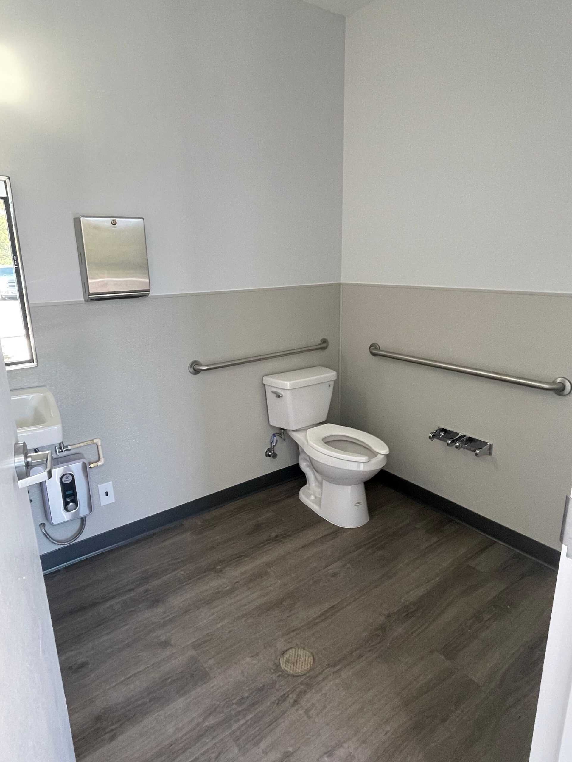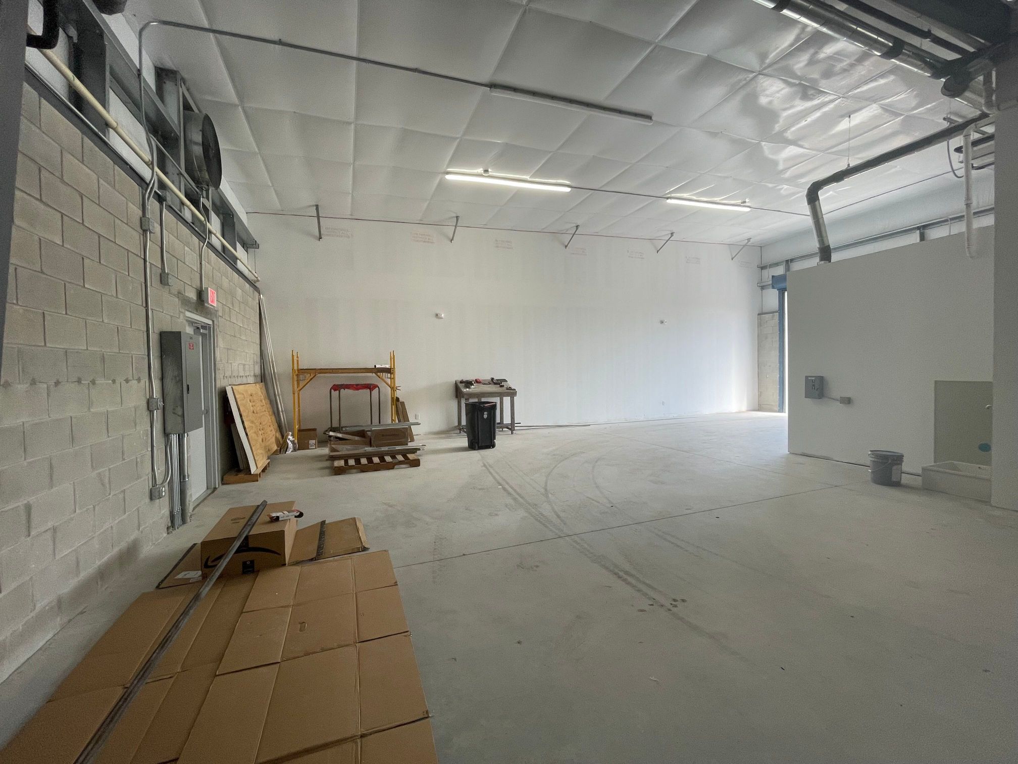 2,422 sq ft with 301 sq ft of office space, including two restrooms.